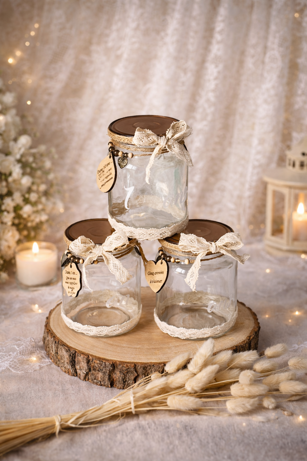 ✔ 3 pots en verre recyclés décorés