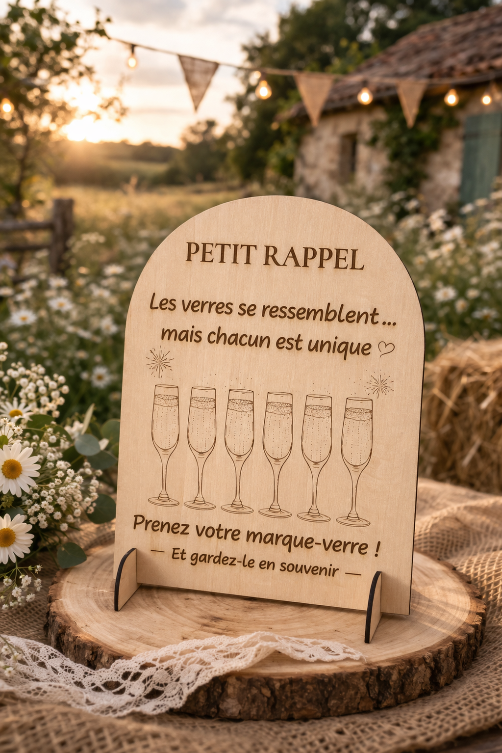 Avec son design doux et son style champêtre, ce panneau s’intègre parfaitement dans une décoration de mariage bohème, rustique ou romantique.